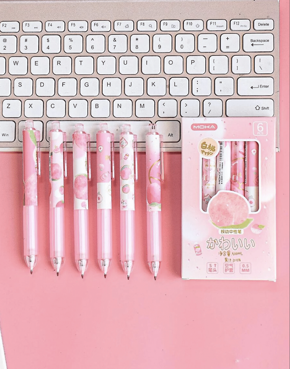 Kawaii Peach Gel Pen Set – 6pcs ✨